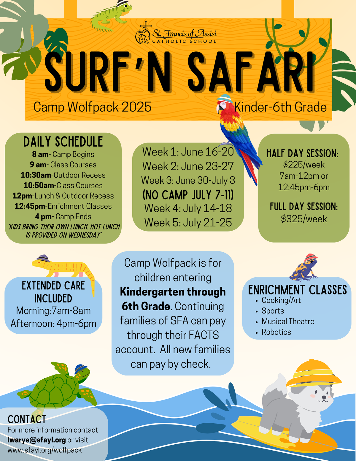 Registration is available for half days or full days each week. Full-day registration is $325 per week. Half-day registration is $225 per week (except week 3). Extended Care is included with registration! Extended Care is offered 7:00 am - 8:00 am before Camp and 4:00 pm - 6:00 pm after Camp.